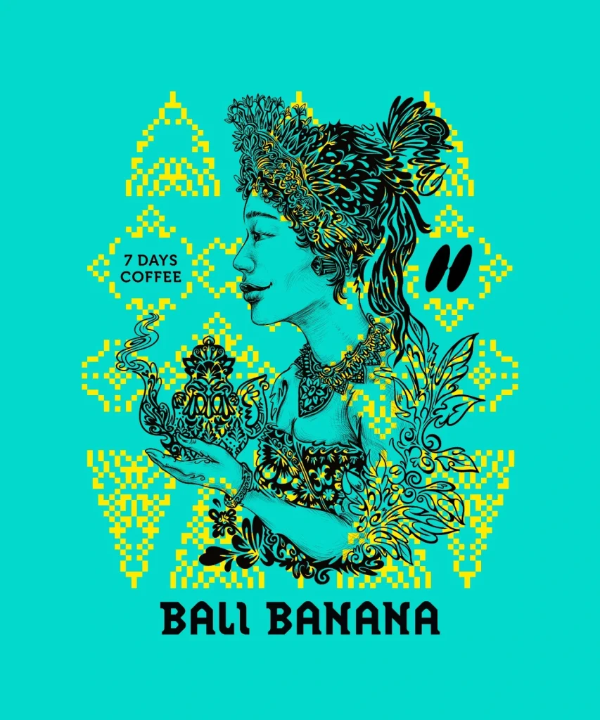 This coffee comes from Kintamani, Bali, and is processed using the natural method. The cherries are dried in a closed area for 24 hours on drying beds, then moved to an open area under full sunlight. At night, the coffee is covered with a tarp, sorted, and dried until it reaches a moisture content of 10%. After that, the coffee is rested and hulled. Bali Banana has tasting notes of ripe fruit, such as banana, with a high level of sweetness